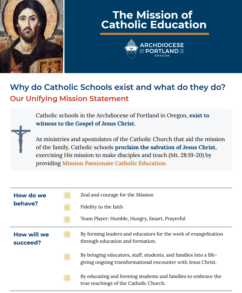 We lead parents to assume their primary role as educators and catechists of their children. Our students and families experience rich Roman Catholic faith formation, a challenging academic curriculum, the Sacraments, the Sacred liturgy, and the opportunity to serve the Church and wider community in charity as loving stewards of God’s creation.